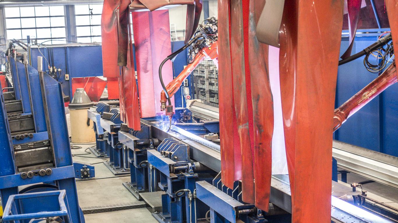 Wir haben fünf Langträger-Roboteranlagen eingerichtet, um Träger mit einer Länge von rund 14 Metern zu schweißen.